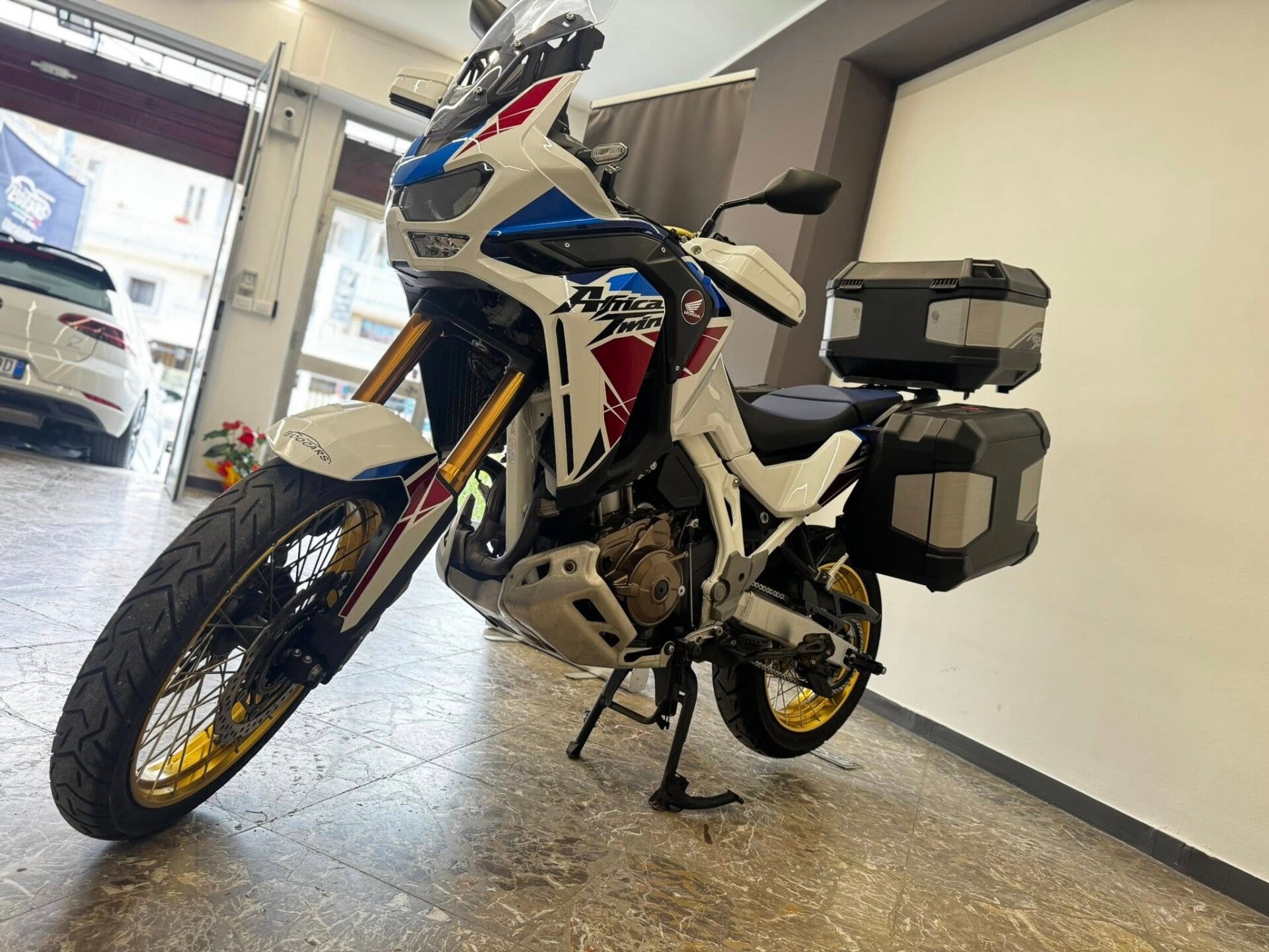 Dotazioni e accessori principali: • Tris valigie originali Honda in alluminio (laterali + top case) • Mappe di guida selezionabili (Tour, Urban, Gravel, Off-Road + modalità personalizzabili) • Cruise Control e manopole riscaldate • Display TFT a colori da 6,5” con Apple CarPlay / Android Auto • ABS cornering e controllo di trazione HSTC regolabile su più livelli • Sospensioni Showa a lunga escursione, completamente regolabili • Serbatoio da 24,8 litri per un’autonomia superiore ai 500 km • Parabrezza regolabile, presa USB e 12V